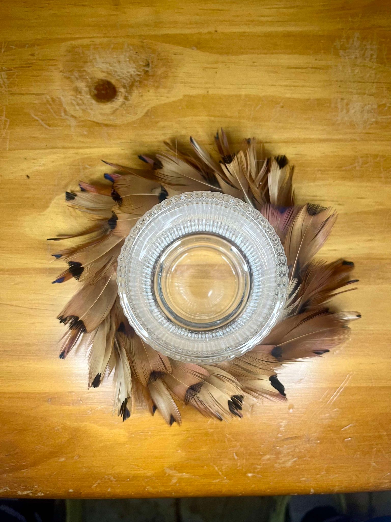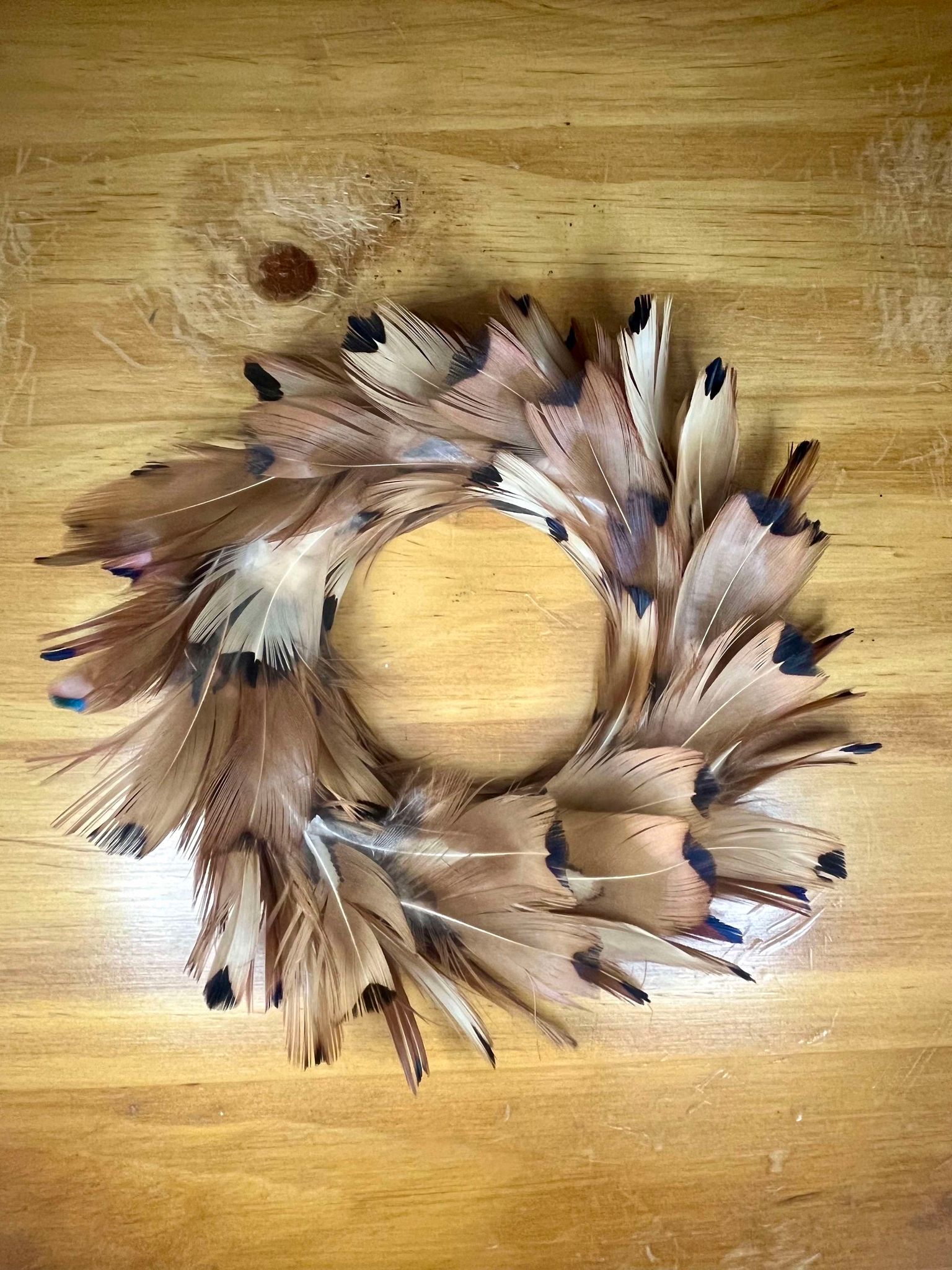 They make the perfect centrepiece or decoration for a smaller table. The Wreath must be used with a glass candle holder as the wreath is made out of natural feathers and flammable