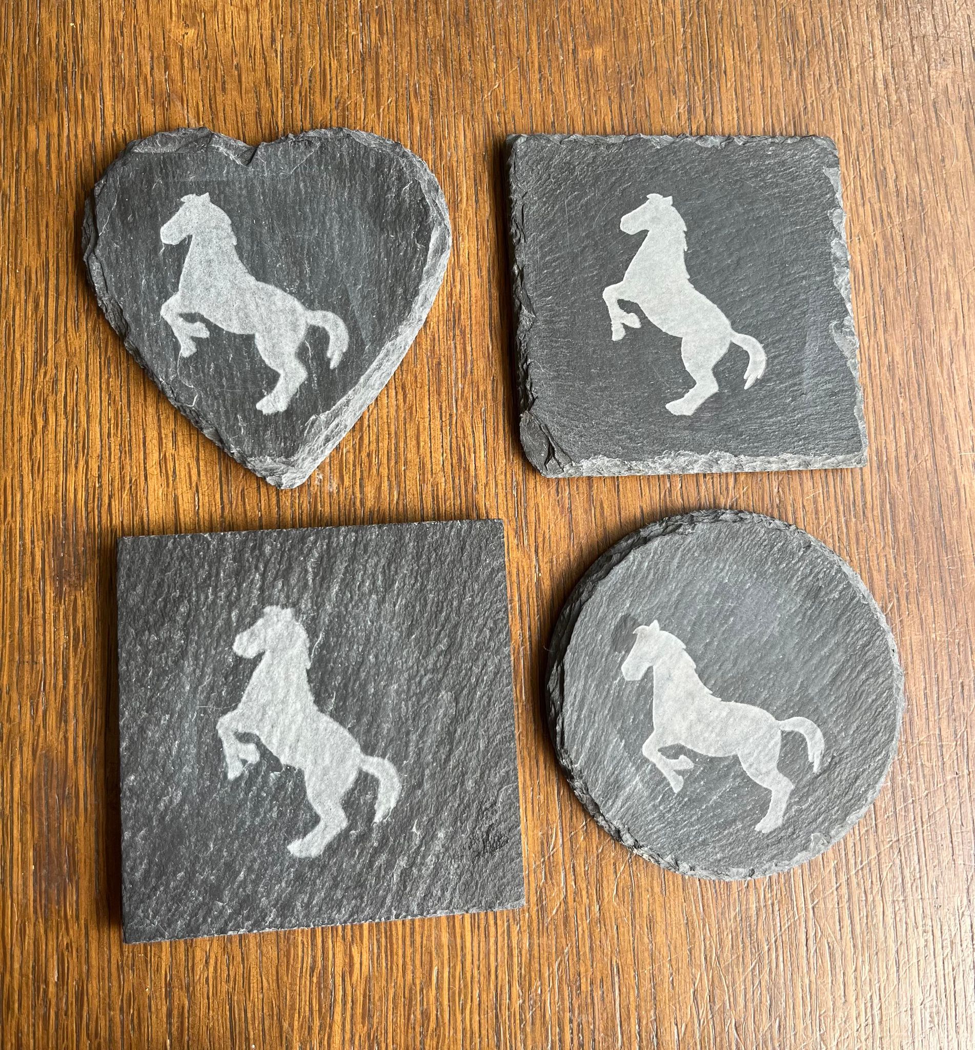 These Coasters come in a number of different shape: Heart, Circle, Square and Smooth Square. They have been through a 3 step process to make them water resistant.